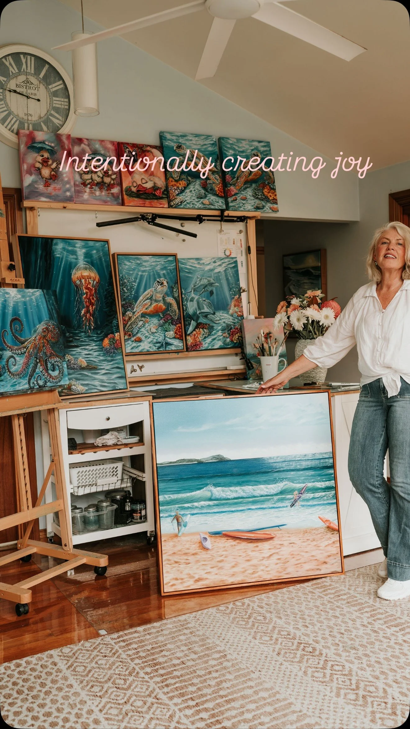 From her studio, Linda creates luminous oil paintings inspired by the ocean, sunlight and the quiet beauty of the natural world. Her work feels warm, feminine and deeply personal — art made to be lived with, loved and felt.