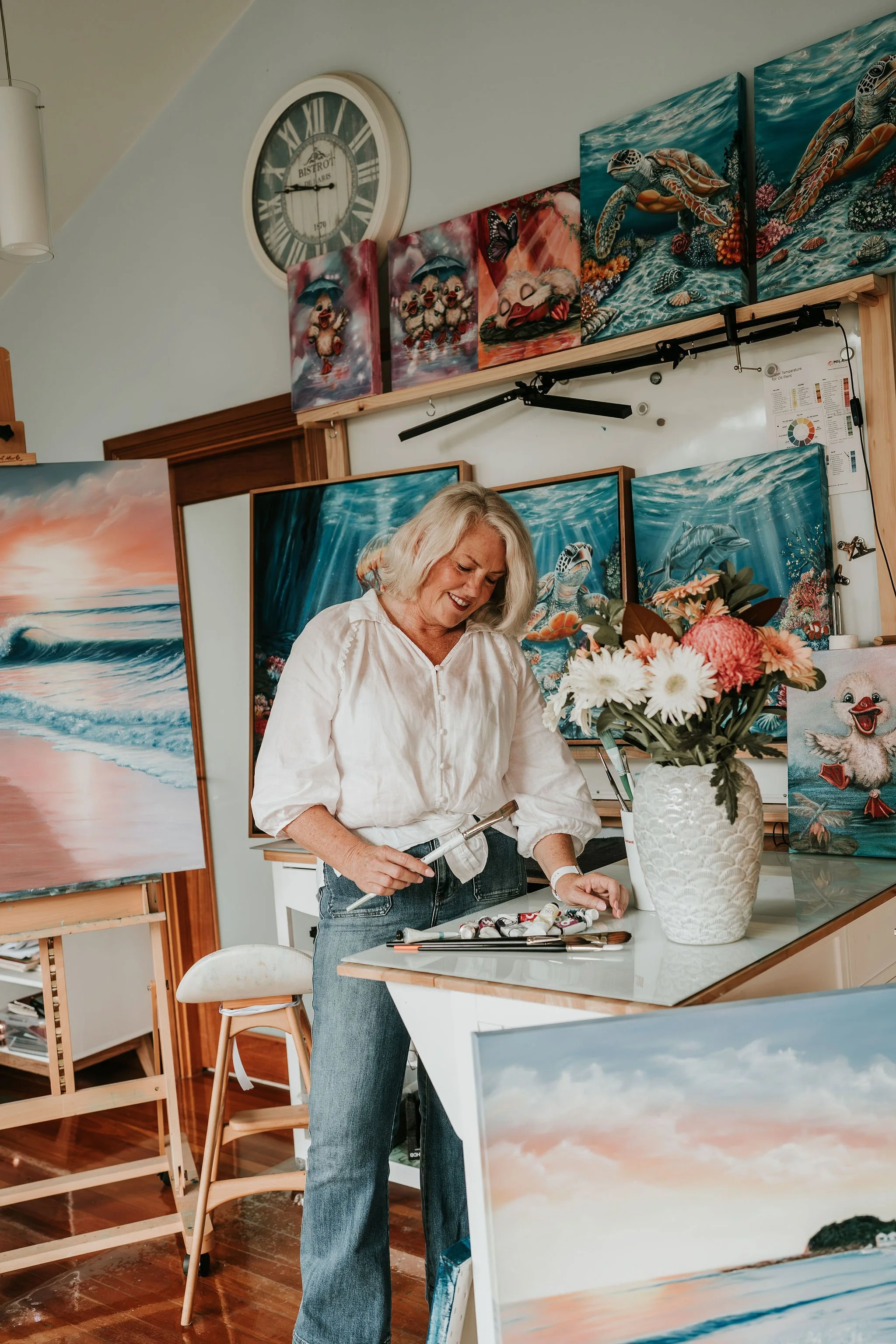 From her studio, Linda creates luminous oil paintings inspired by the ocean, sunlight and the quiet beauty of the natural world. Her work feels warm, feminine and deeply personal — art made to be lived with, loved and felt.